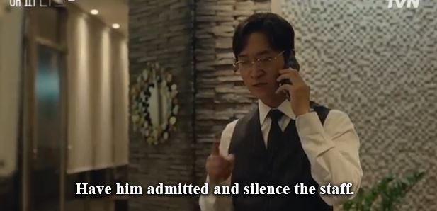 Just then, Han’s wife joins them. Seok chats with Han’s wife as Han goes out to take a call. Han learns from the person on the other end that “he bites”. Han asks if he is taking anything else. He tells the person to get him admitted and keep the staff silent. He adds that the approval will come tomorrow and word cant get out. The person on the phone seems to object. Han says he doesn’t care if the person is not dead. He says they will compensate the family and take care of the treatment too.