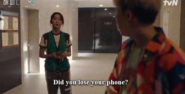 Just then, the cashier comes and says she spotted Dong Hyun’s phone outside the entrance. He offers to pay her cash if she goes and retrieves it. She agrees.