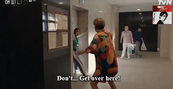 Meanwhile, Na tells him not to open the door but her brother opens it anyways. He finds the stairwell empty. He turns around in pride.