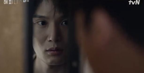 Meanwhile, Oh is in the shower screaming as he is splashing water on his already clean face. He checks if his eyes are white and goes outside after seeing that he is normal.