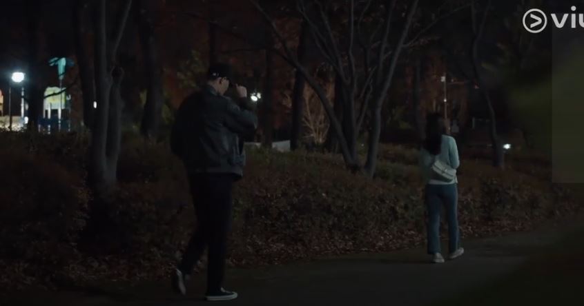 Hee Woo joins them. He asks why Min Soo is keen on making friends with his juniors. Just then, Hee Woo notices a man with dark clothes and a cap sitting at a table by the corner.