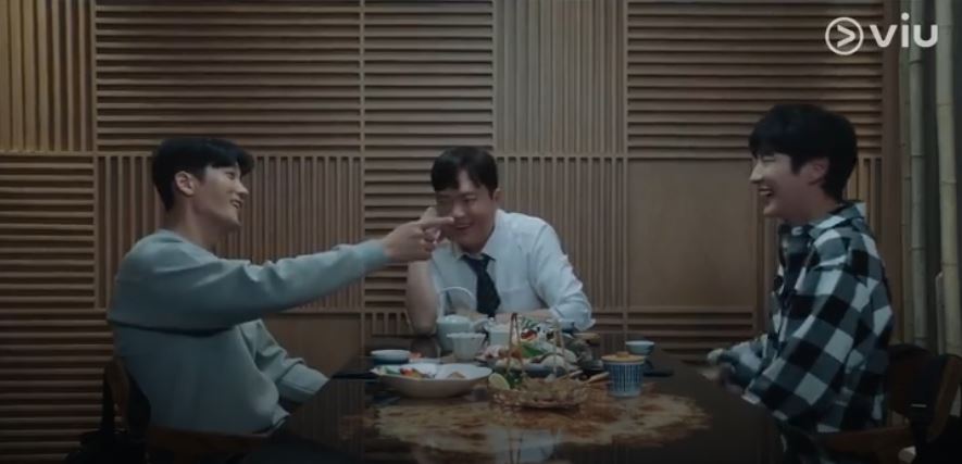 Just then, Min Soo joins them with fried chicken and drinks. Hee Woo asks for the third reason. Moon says he got a message before he left to meet Kim Chan ll. Moon says he called the number back but a man picked up and said he never sent that message. Moon says that there were some articles he found about Kim Chan ll, all related to patent wars. Hee Woo wonders who was behind this.