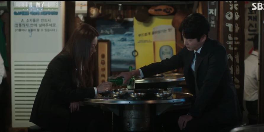 Yoon Joon Gi and Jo have dinner. Jo says he is disappointed that Yoon didn’t give Jo a heads up about investigating Kim’s wife (JQ Constructions). Yoon apologises.