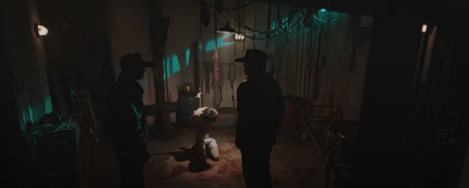 Later, boy 11 is on his knees in a secluded room. It looks like he has been tortured. He struggles against his bonds but goes still as the guards walk in. The boy acts unconscious. Crazy dog says his wife is pregnant and she told him not to do anything unlucky as it is a geriatric pregnancy.