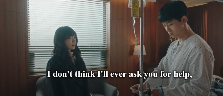 Sung Hoon hands her his kerchief and tells her to hide it, as the wound will remind her of the incident every time she looks at it. He tells her Sung Jun’s room number and leaves.
