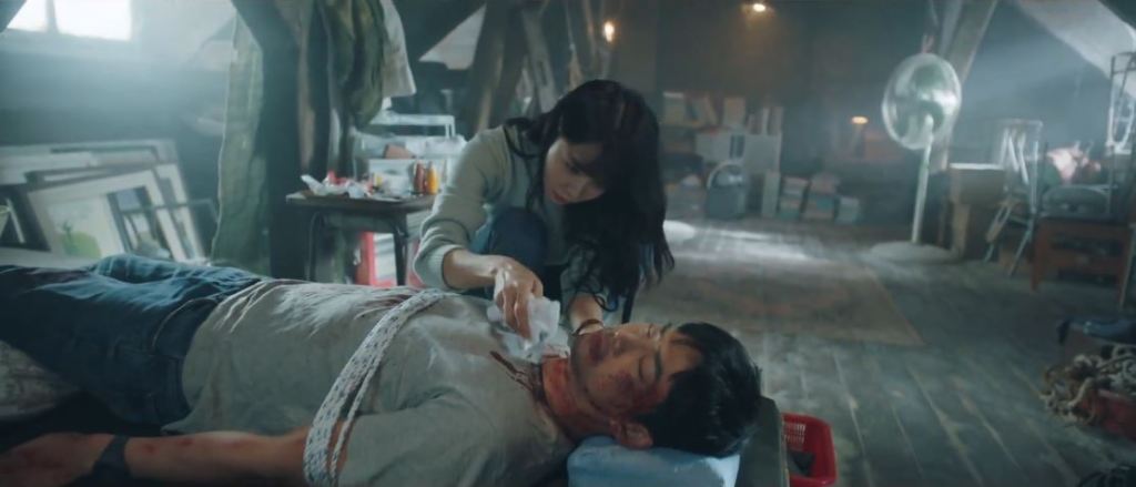 Eun Ki drives to the location and is startled to find the phone booth empty and bloody. She finds Sung-Jun underneath a blanket by the side of the road. He tells her he thought she wouldn’t come.