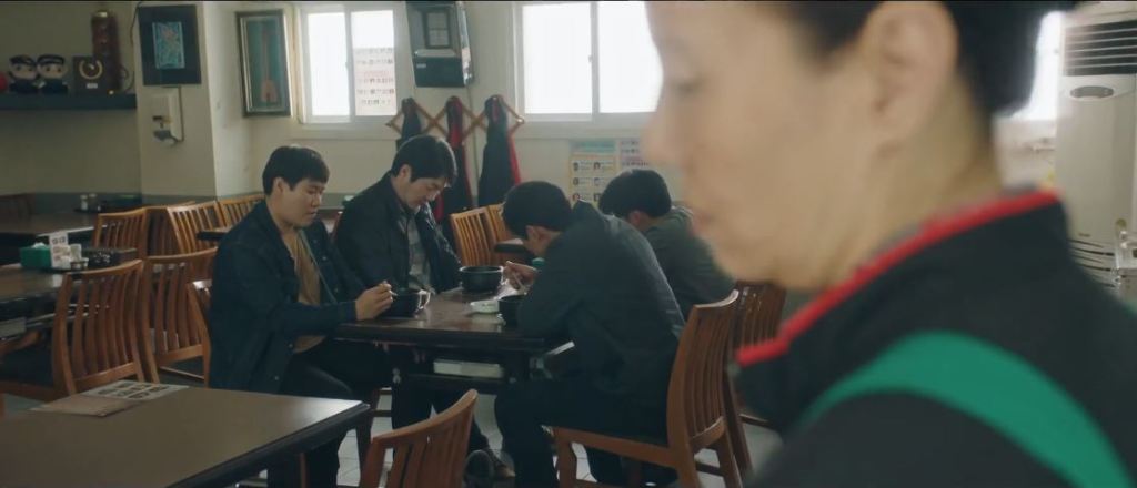 Crazy Dog Baek walks in and calls out Choi’s name. He says they are expecting a guest soon. Choi moves away but says the boy wasn’t cleaning properly.