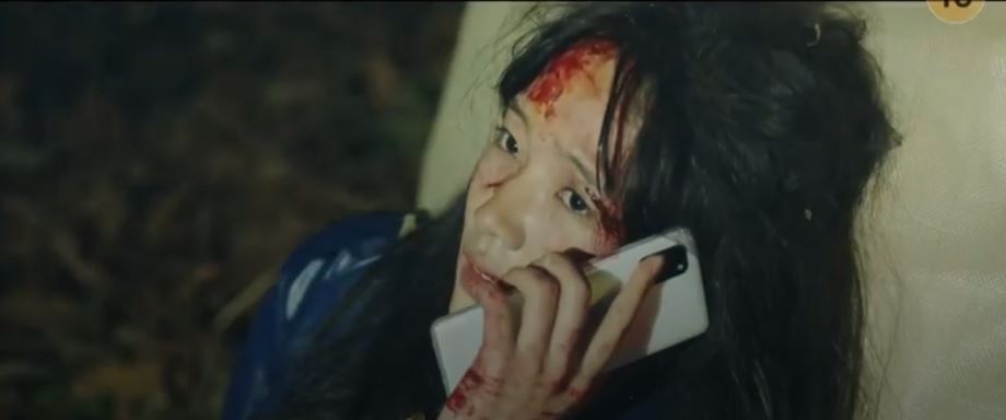 In the woods, Yu Na is badly injured as she speaks on the phone. Light flashes on her as the killer comes closer. The killer grabs her phone and cuts the call. The killer picks up a rock that lies by her side and brings it down on her.