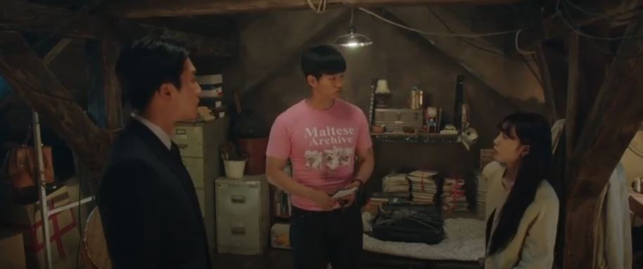 In the attic, Sung Hoon lists the facts of the three cases on the board. He says even if they get a breakthrough in one of the cases, they can clear Sung Jun off the serial murder charges.