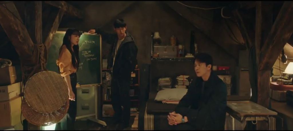 Back in the attic, Sung Jun writes Sung Hoon’s name on the board and writes “why?” beside it. Sung Jun looks at the rest of the notes on the board and figures out that they weren’t after Sung Hoon but their target was Ahn Tae Ho. Sung Jun wonders how the three people (Baek, Choi and Ahn) are connected.