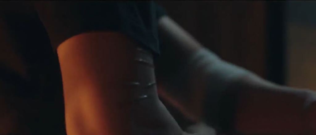 Elsewhere, Sung Hoon dresses his wound. There are scratch marks on both his upper arms.