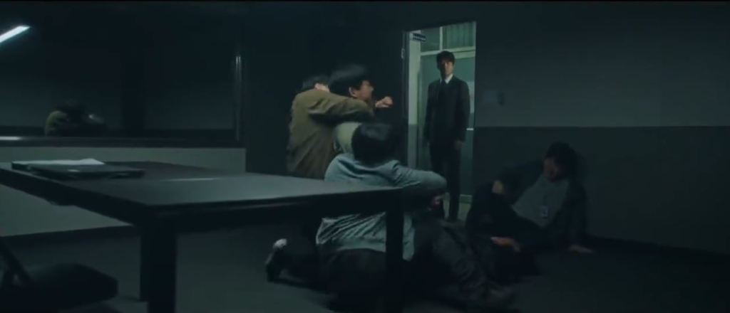 In the interrogation room, Sung Jun snaps and suddenly gets up and fights back in a frenzy. He manages to floor Baek and gets on top of him. Sung Jun places his hands over Baek’s neck and strangles him. The detectives rush in and try to pull Sung Jun away. Sung Jun pushes them away. Kim gets hold of Sung Jun and manages to pull him away. Sung Hoon watches Sung Jun’s fury quietly.