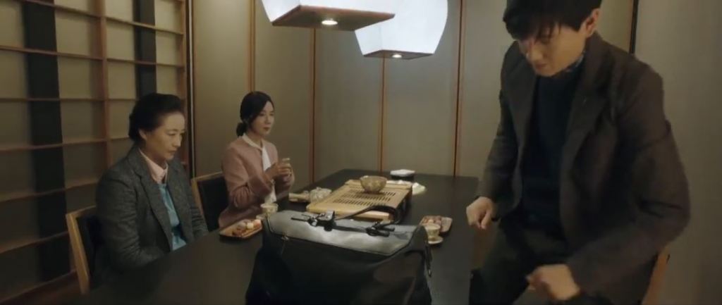Yeom says Yoon Jae has collected many people here. Yoon Jae says what Yeom did to them was a whole different level. Yeom says he paid back for what he did through his daughter’s death. He says they are even now. Yoon Jae laughs and says they aren’t even.