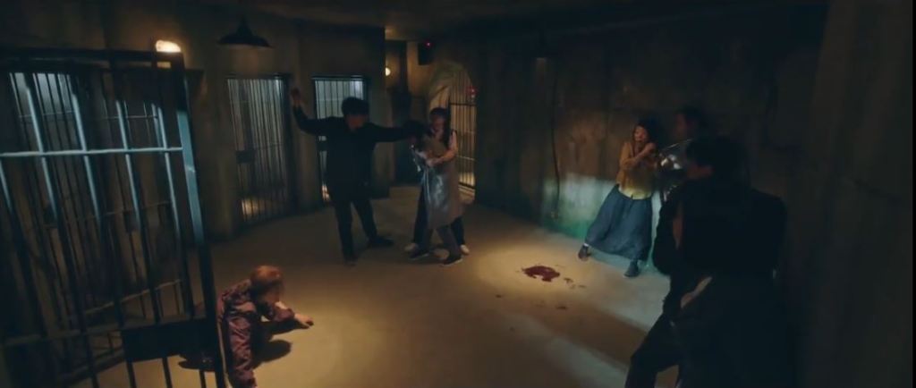 Yeom wakes up again in the storage room. This time the door is locked. He finds Baek in the corner. Yeom goes and tries to hit Baek for betraying him. Baek pushes him away. Baek’s ankle is injured.
