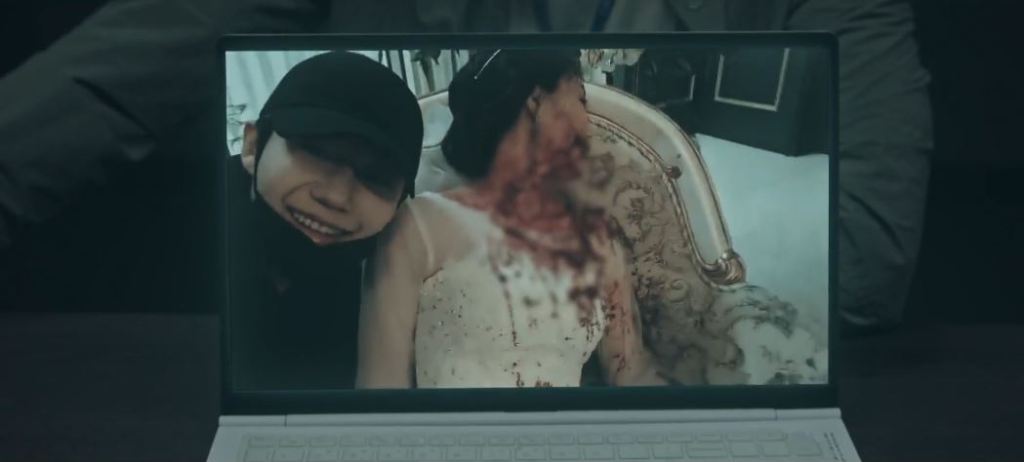 Sung Jun shows Yoon Jae footage of Yoon Jae posing beside Kang Ha Na’s corpse at the wedding. He says Yoon Jae nicked her artery by mistake as he didn’t have time but he still took the video. Yoon Jae asks how Sung Jun found it.