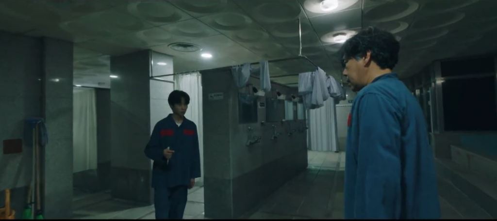 Sung Hoon’s eyes well up and he looks at the other prisoners fast asleep. Sung Hoon reaches up and takes the scissors that he stole from the Doctor’s Office.