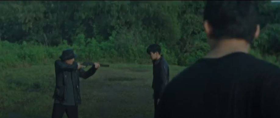 Sung Jun drives up to the lake. He gets out of the car and calls out to his father. Sung Hoon stands still as Judge Ryu pulls the trigger.